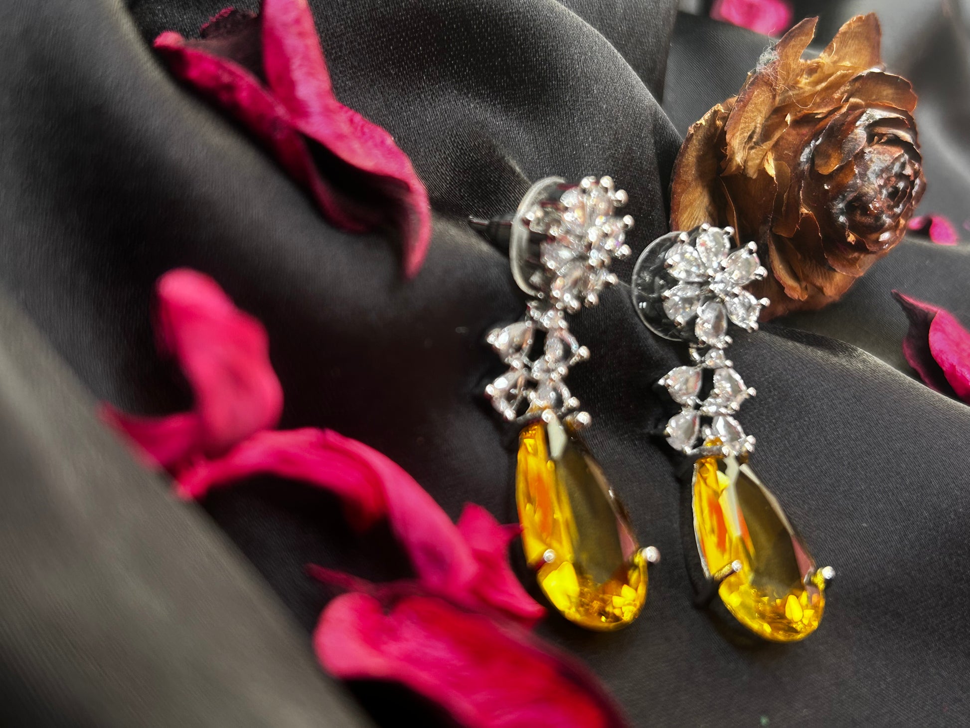 Pair these American diamond earrings with a sleek updo and a little black dress for a timeless and glamorous evening look. Can be paired with Indian , indowestern, western outfit.