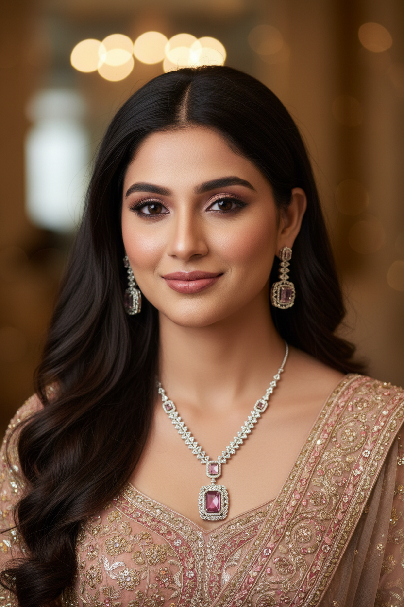 Add a touch of class and ton of glamour to your styling this season, gorgeous new American Diamond Jewellery Set to sparkle your parties and dazzle up your outfits!