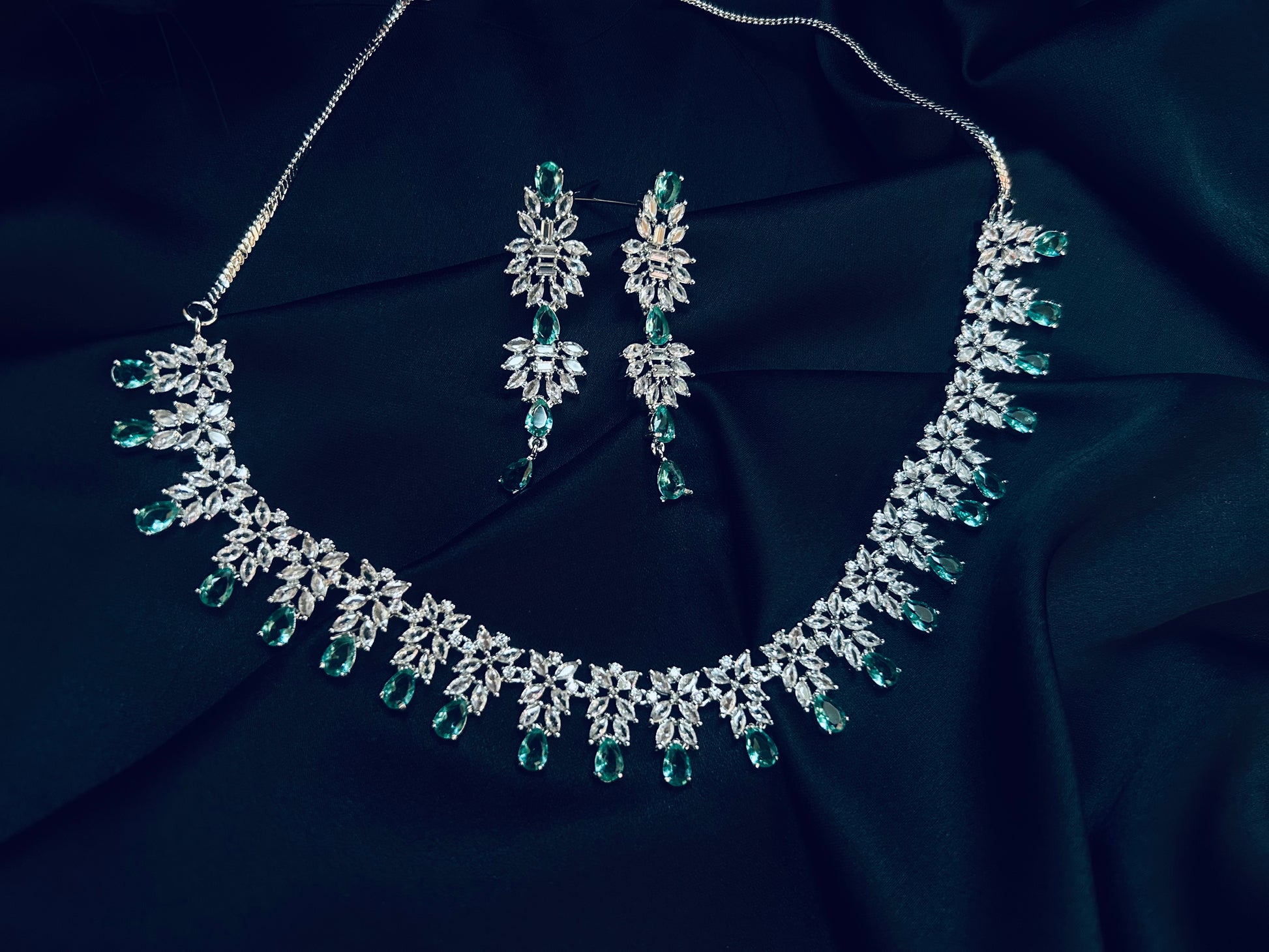 Add a touch of class and ton of glamour to your styling this season, gorgeous new American Diamond Jewellery Set to sparkle your parties and dazzle up your outfits!