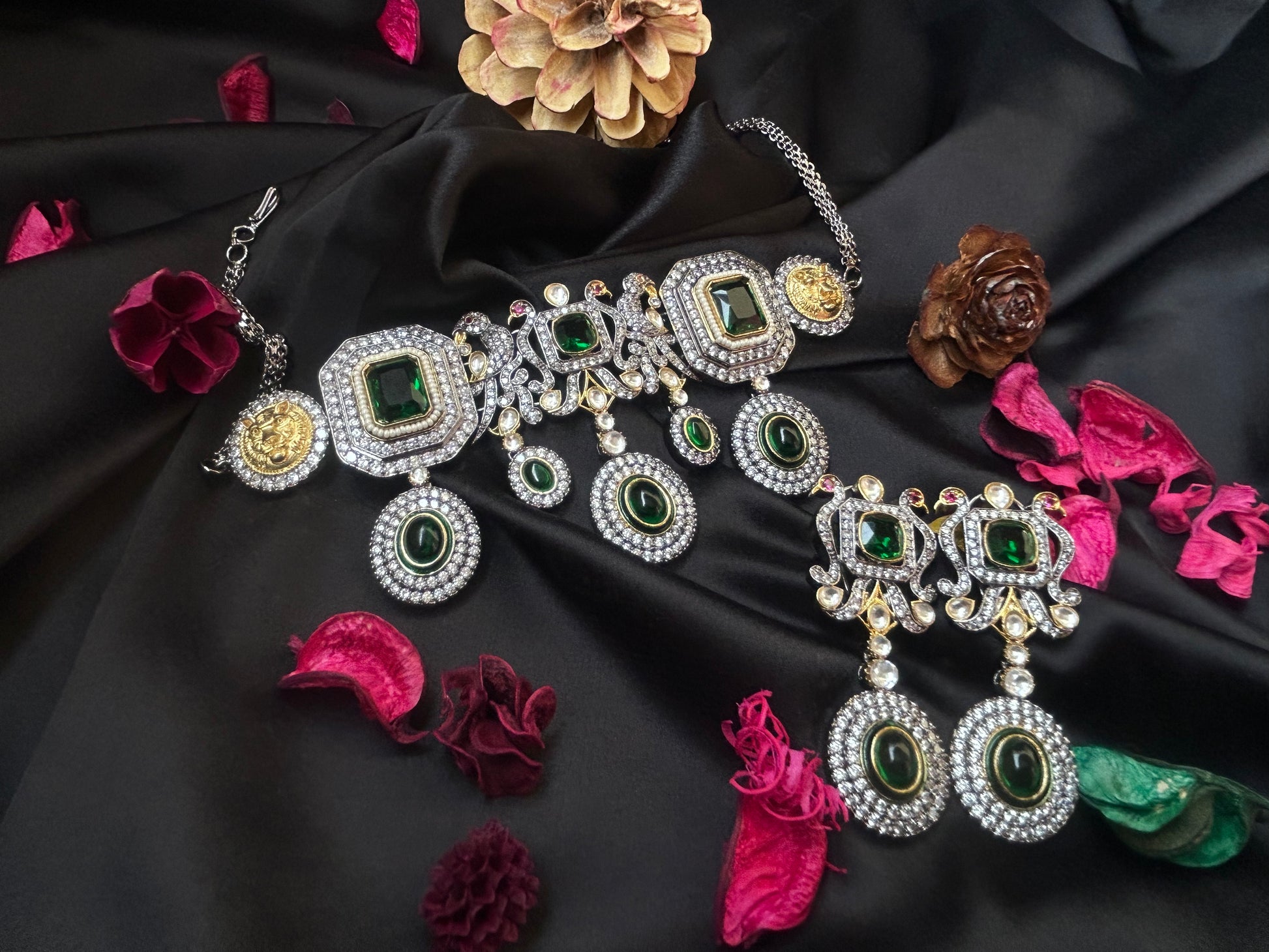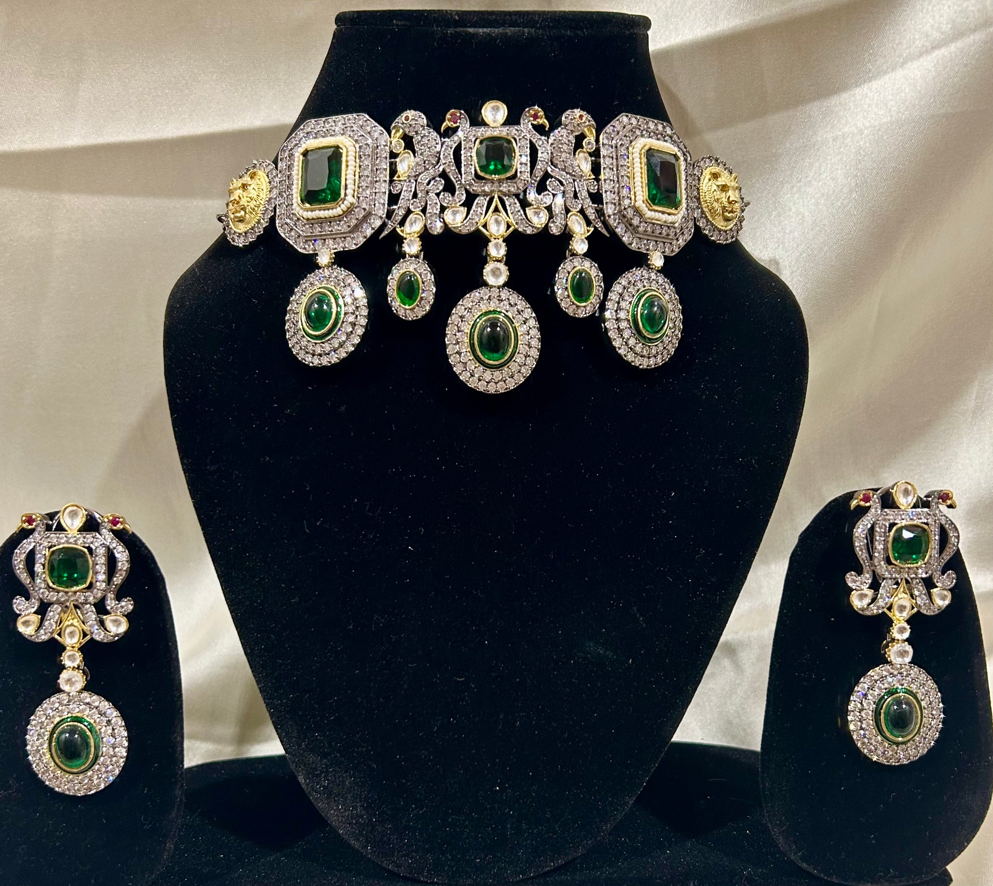 Add a touch of class and ton of glamour to your styling this season, gorgeous and royal new American Diamond Jewellery Set to sparkle your parties and dazzle up your outfits!