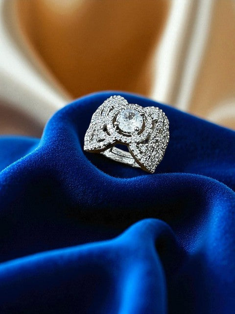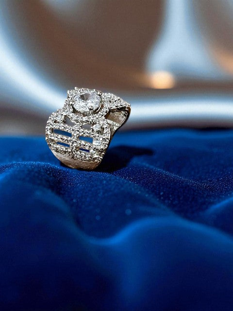 Step into the spotlight with this luxurious cocktail ring, designed to turn heads with its exquisite grandeur. Crafted with a bold emerald-cut centerpiece embraced by a stunning double halo of meticulously set stones, this ring speaks of elegance and confidence. The intricately detailed band features a unique split shank design adorned with shimmering accents, adding dimension and brilliance from every angle. Perfect for elevating evening ensembles, celebratory occasions, or simply indulging your love for standout jewelry.