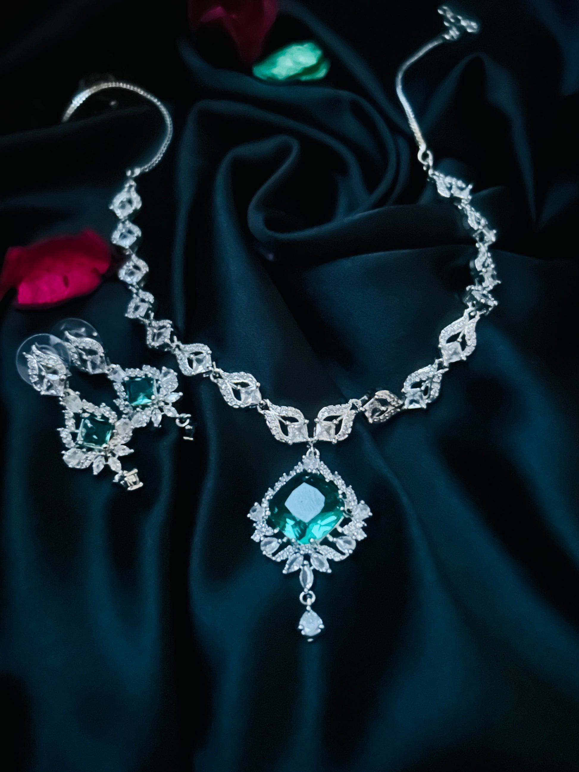 Add a touch of class and ton of glamour to your styling this season, gorgeous and royal new American Diamond crown Jewellery Set to sparkle your parties and dazzle up your outfits!