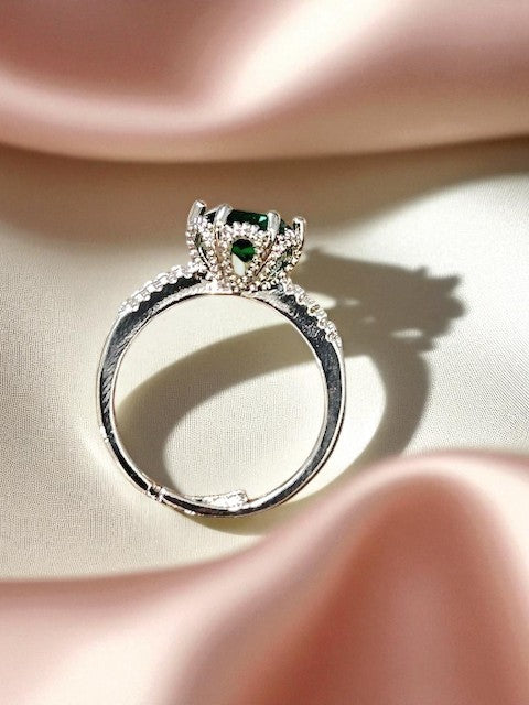 Step into the spotlight with this luxurious ring, designed to turn heads with its exquisite grandeur. Crafted with a bold emerald-cut centerpiece embraced by a stunning double halo of meticulously set stones, this ring speaks of elegance and confidence. The intricately detailed band features a unique split shank design adorned with shimmering accents, adding dimension and brilliance from every angle. Perfect for elevating evening ensembles, celebratory occasions, or simply indulging your love for standout jewelry.