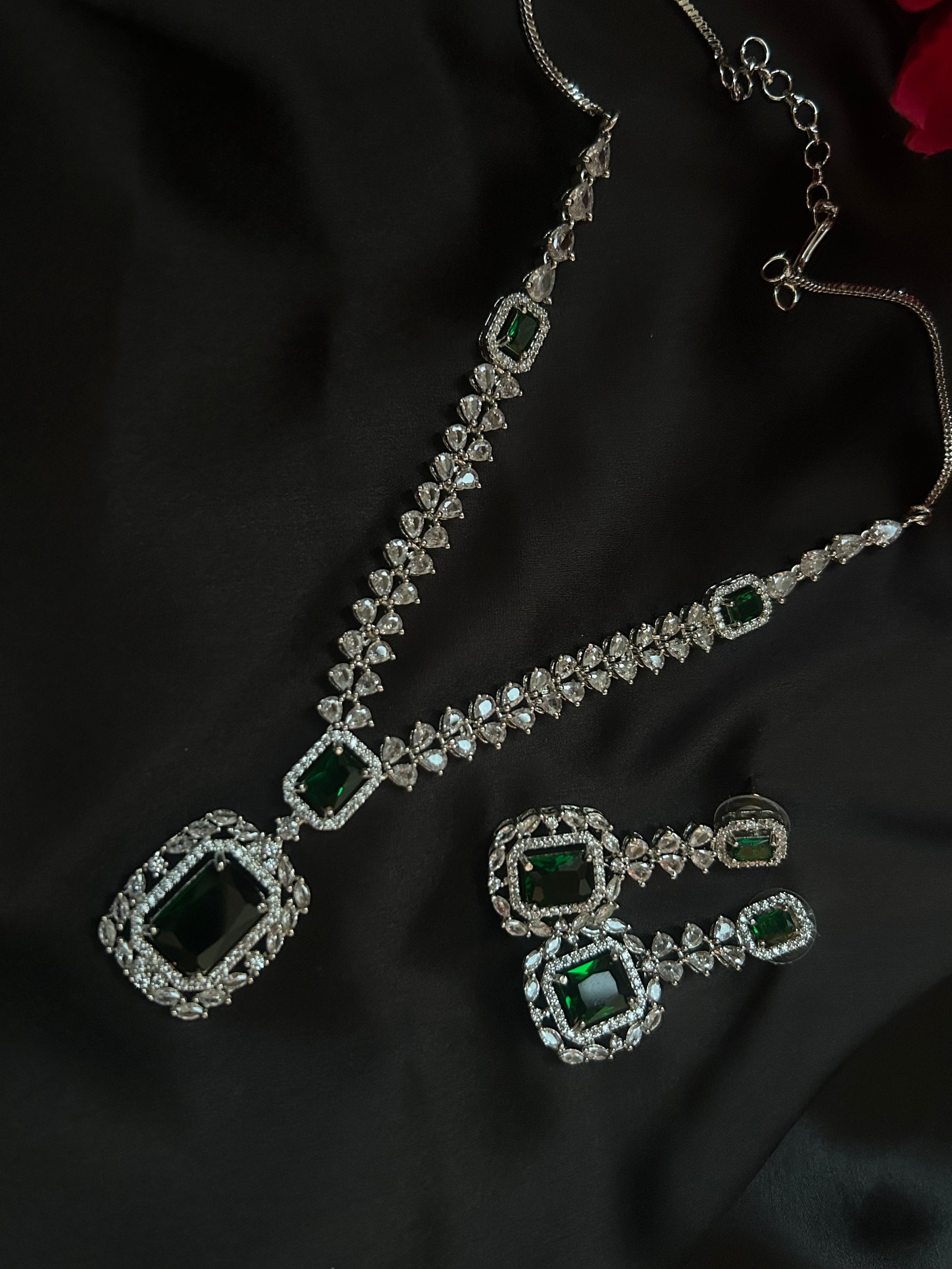 Add a touch of class and ton of glamour to your styling this season, gorgeous new American Diamond Jewellery Set to sparkle your parties and dazzle up your outfits!