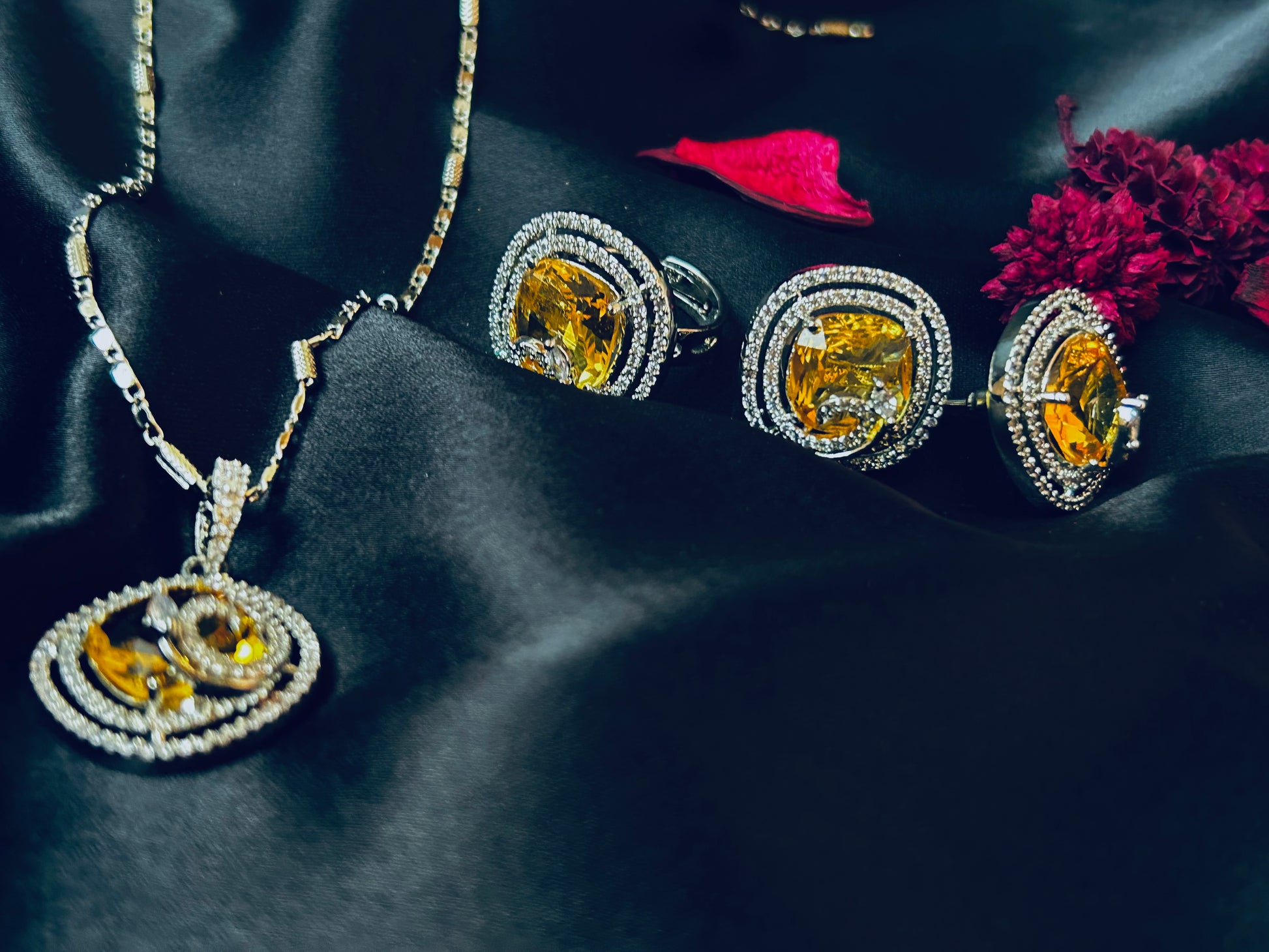 Khwaish yellow pendant set with ring