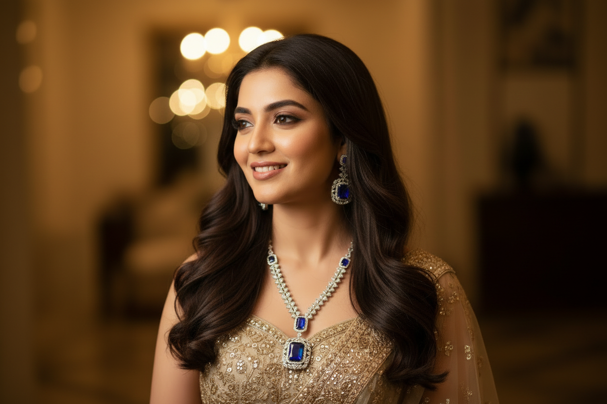 Add a touch of class and ton of glamour to your styling this season, gorgeous new American Diamond Jewellery Set to sparkle your parties and dazzle up your outfits!