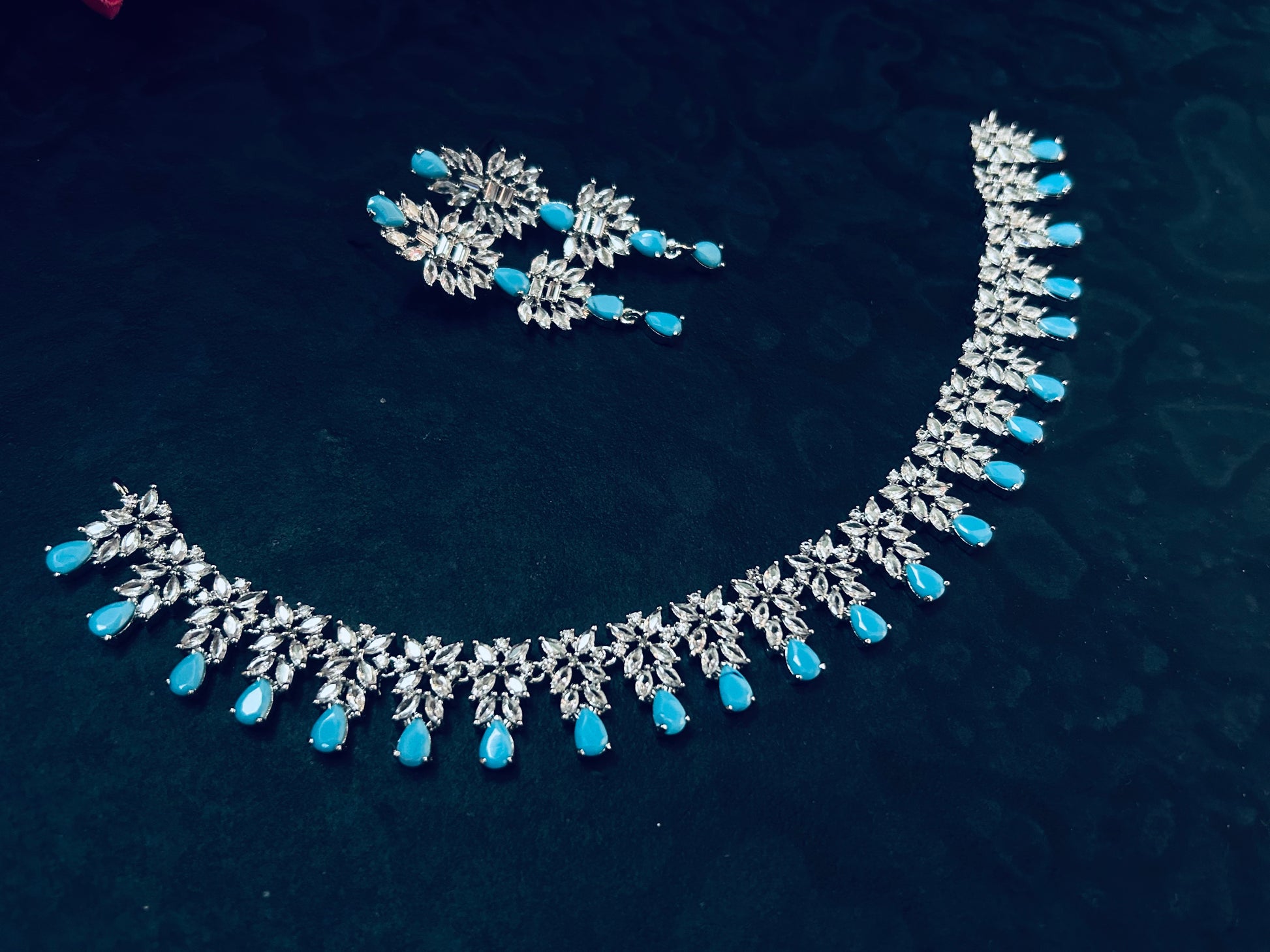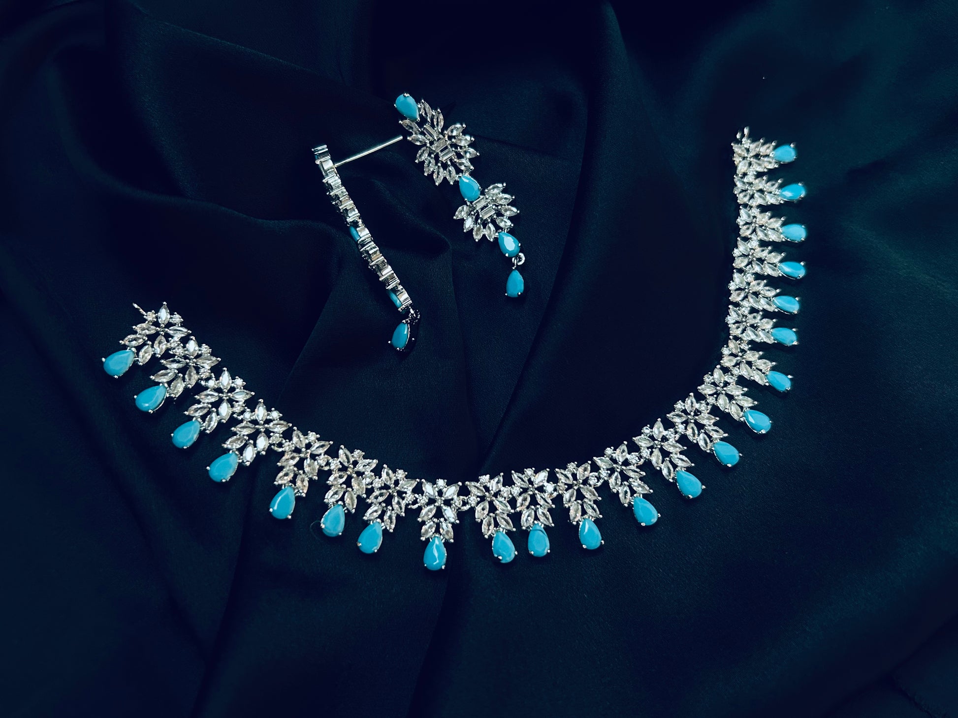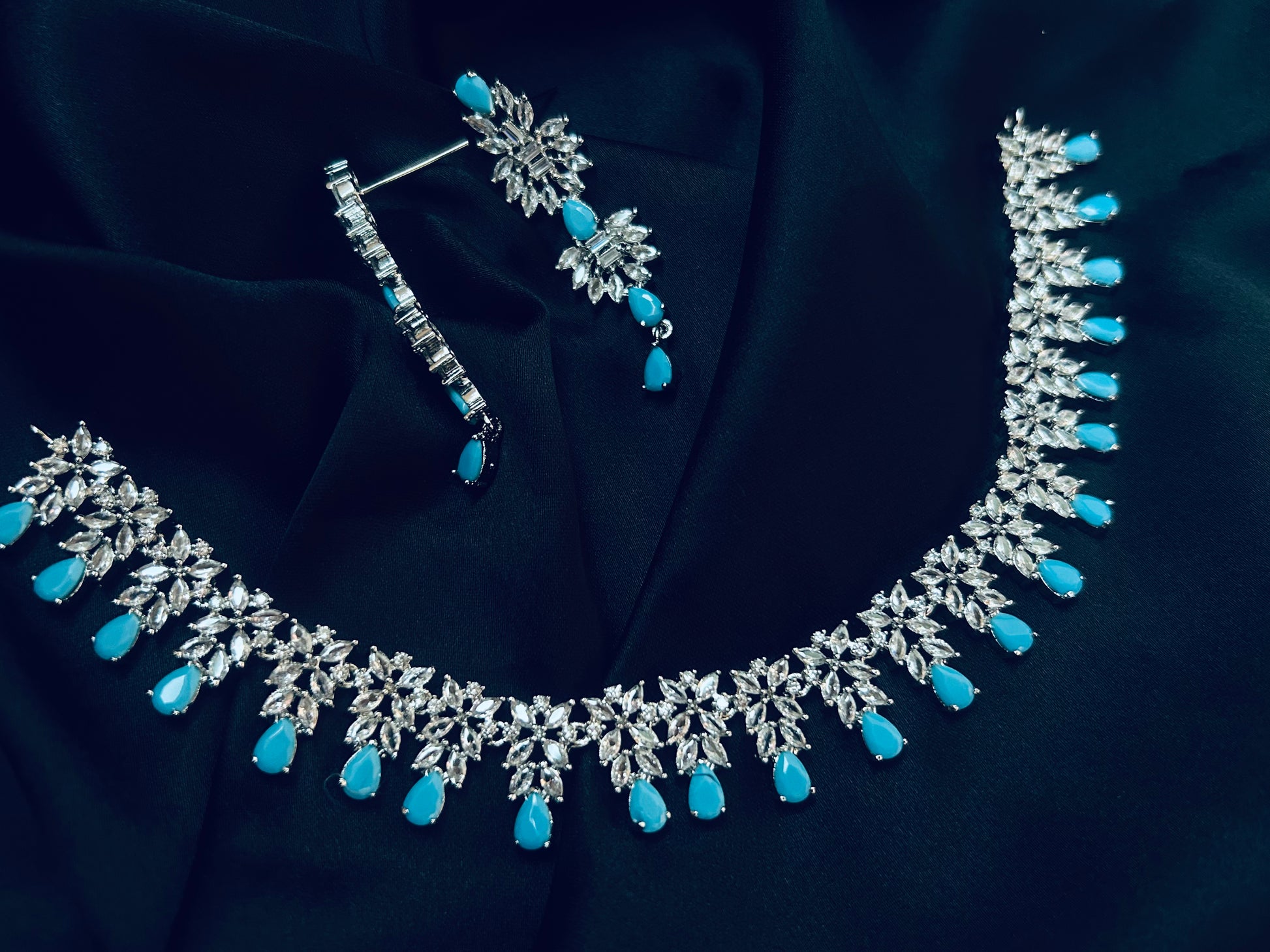 Add a touch of class and ton of glamour to your styling this season, gorgeous new American Diamond Jewellery Set to sparkle your parties and dazzle up your outfits!