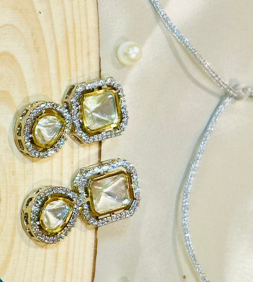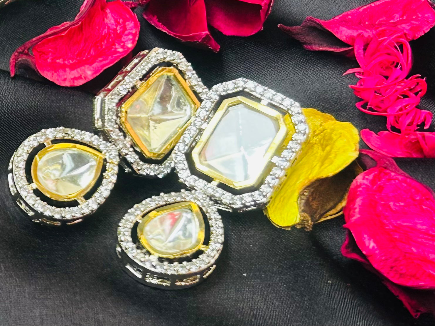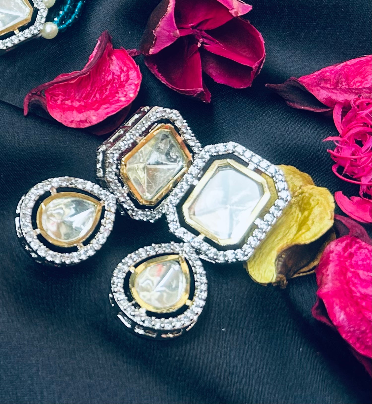 Add a touch of class and ton of glamour to your styling this season, gorgeous and royal new American Diamond crown Jewellery Set to sparkle your parties and dazzle up your outfits!