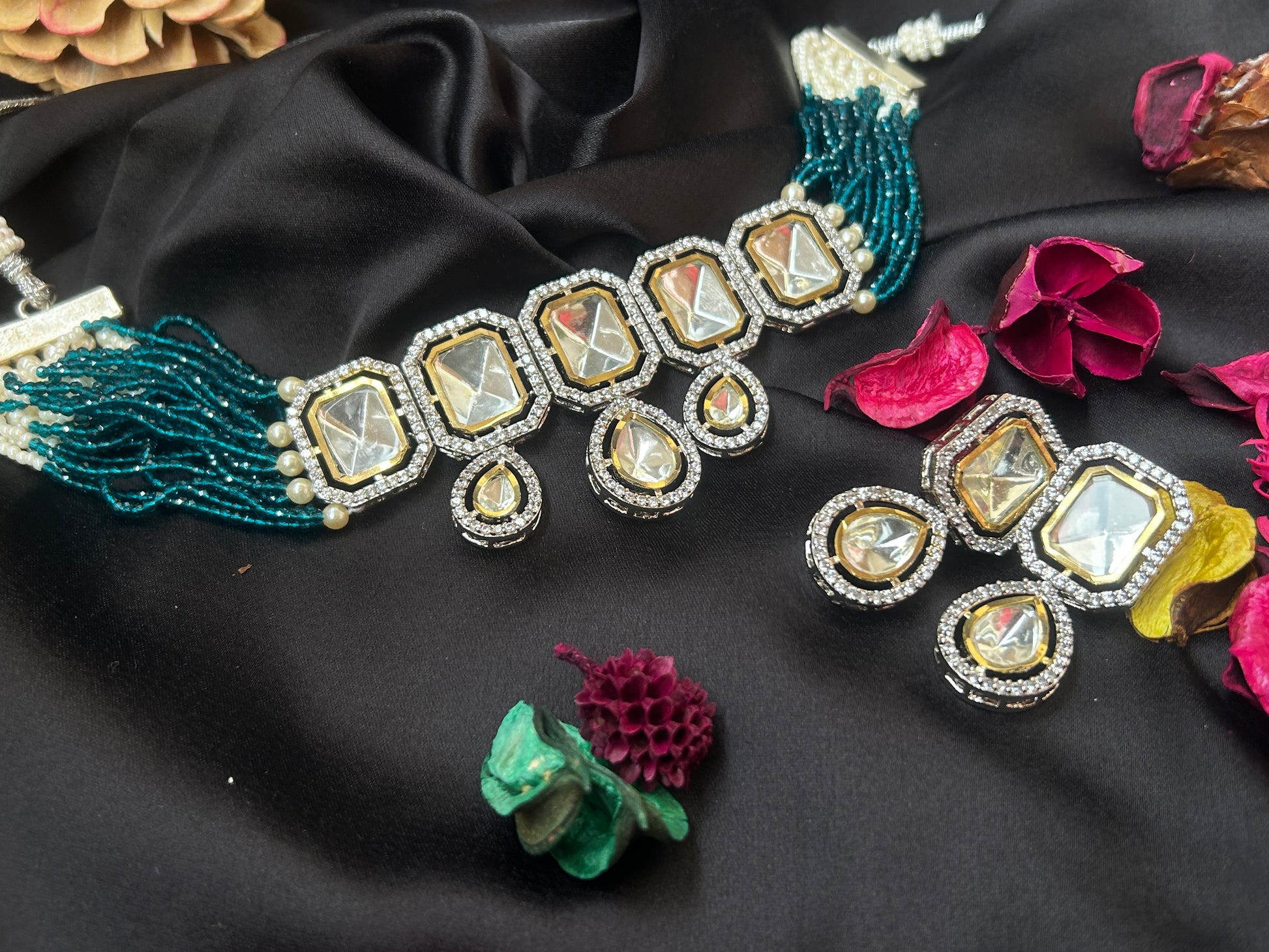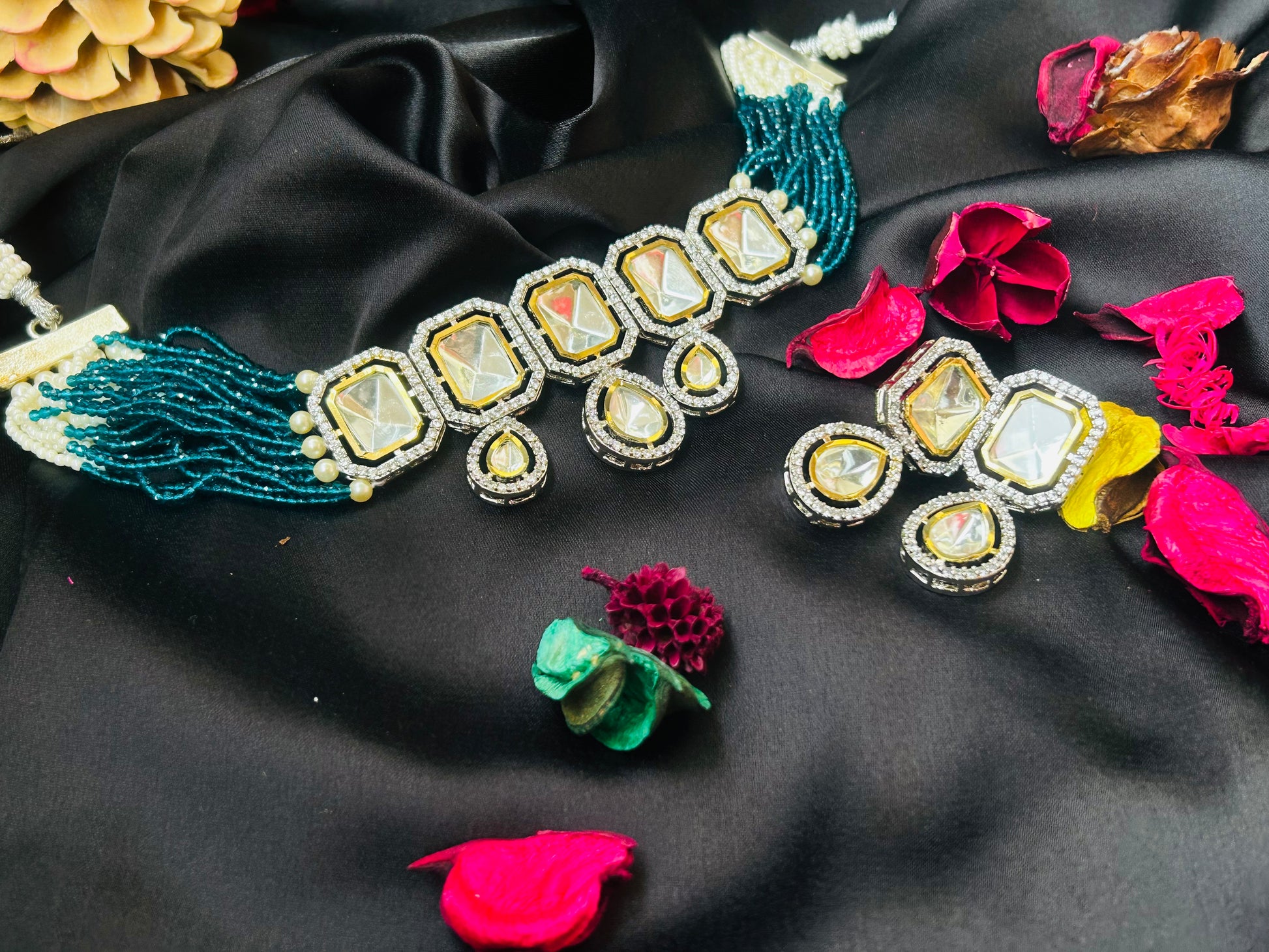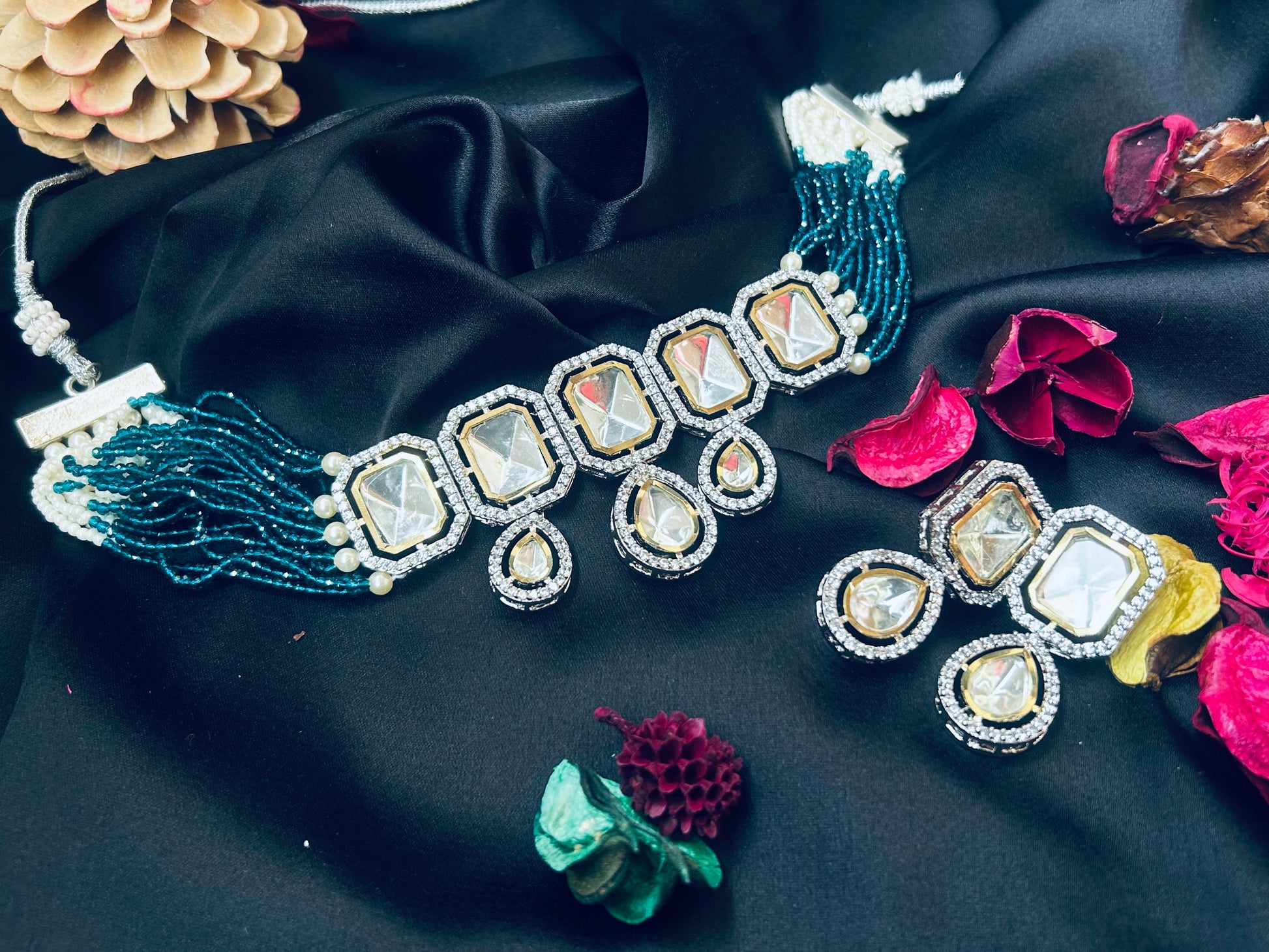 Add a touch of class and ton of glamour to your styling this season, gorgeous and royal new American Diamond crown Jewellery Set to sparkle your parties and dazzle up your outfits!