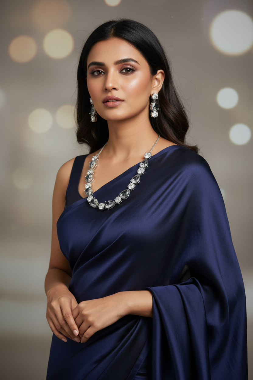 Add a touch of class and ton of glamour to your styling this season, gorgeous and royal new American Diamond crown Jewellery Set to sparkle your parties and dazzle up your outfits!